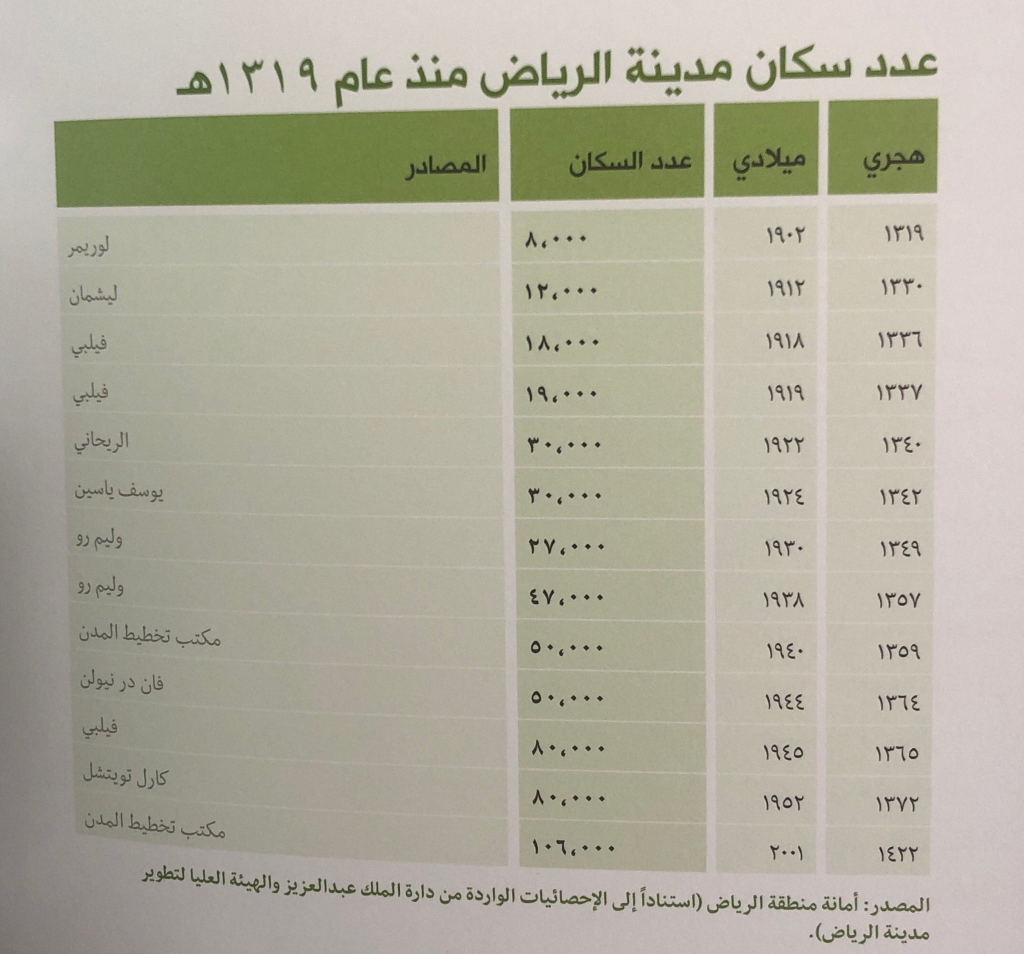 ذكريات Memories Auf Twitter هل تعلم أن عدد سكان مدينة الرياض قبل مائة سنة كانوا ثلاثين ألف نسمة فقط لمعلومات أكثر طالع الجدول المرفق وهو من إعداد أمين الرياض السبق الأمير